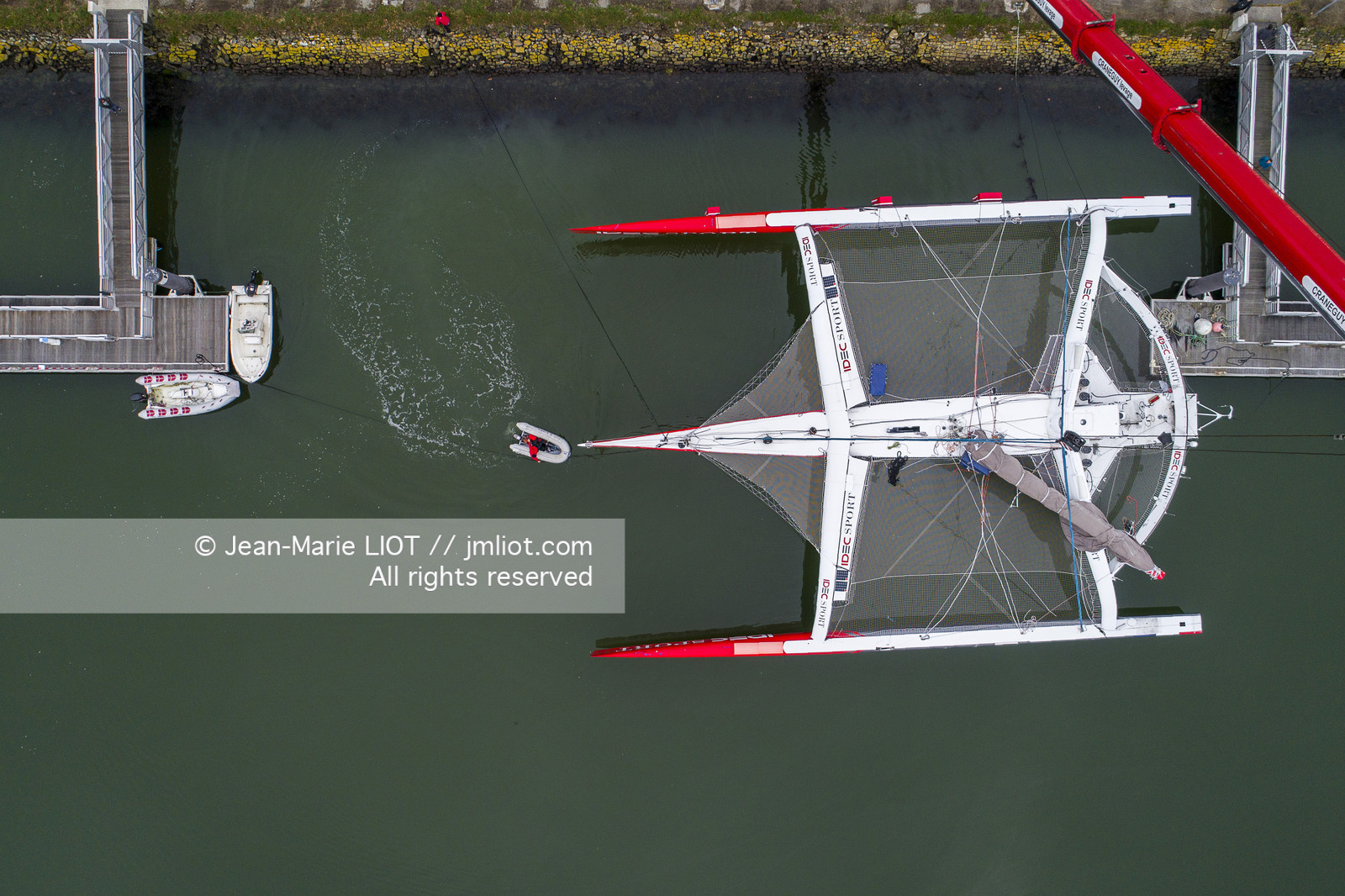 Mise à l'eau d'IDEC SPORT au chantier Multiplast à Vannes le 22 mars 2018, Photo © Jean-Marie LIOT - www.jmliot.com.