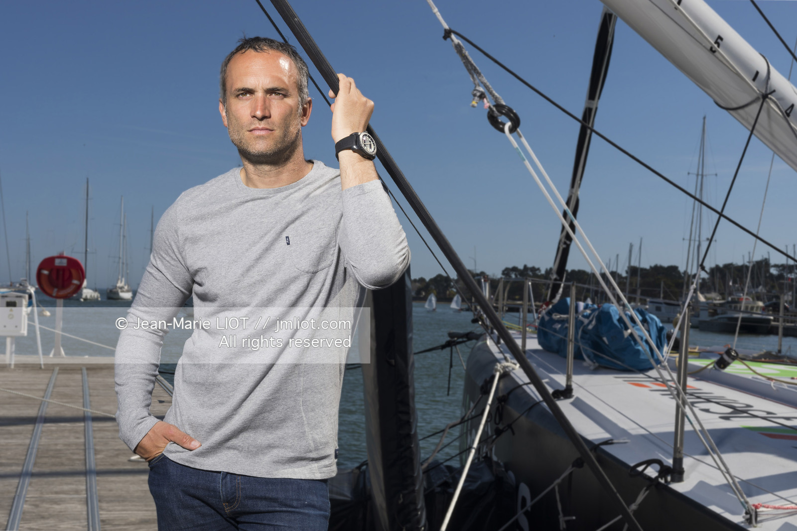 | Description | French solo sailor Fabrice Amedeo with Breitling watches, onboard his IMOCA Newrest-Arts & Fenetres, in Quiberon Bay on April 18, 2018 photo © Jean-Marie LIOT - www.jmliot.com |