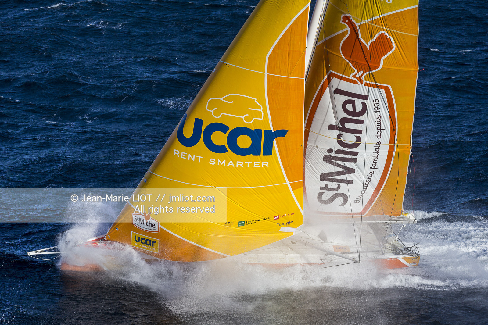 | Description | Yann Eliès, skipper de l'IMOCA Ucar-Saint Michel, à l'entrainement au large de Belle-Ile avant le départ de la Route du Rhum Destination Guadeloupe 2018, le 7 octobre 2018, Photo : Jean-Marie LIOT - www.jmliot.com |