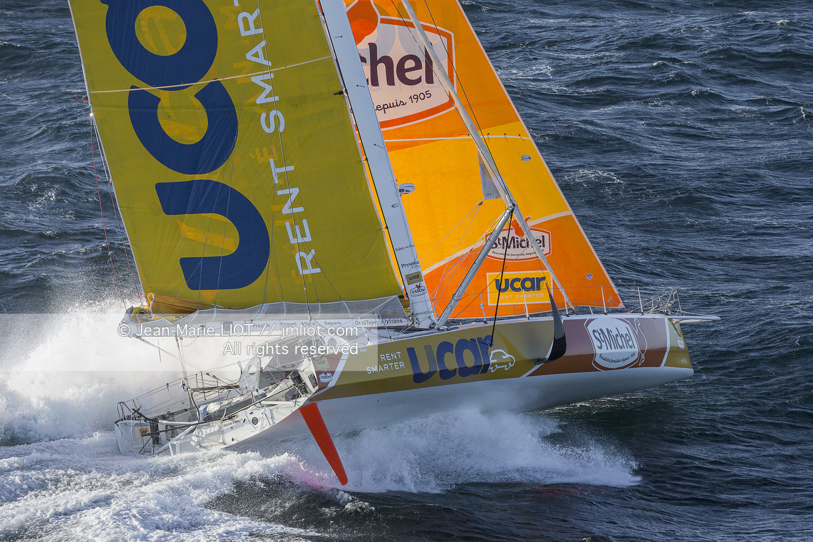 | Description | Yann Eliès, skipper de l'IMOCA Ucar-Saint Michel, à l'entrainement au large de Belle-Ile avant le départ de la Route du Rhum Destination Guadeloupe 2018, le 7 octobre 2018, Photo : Jean-Marie LIOT - www.jmliot.com |