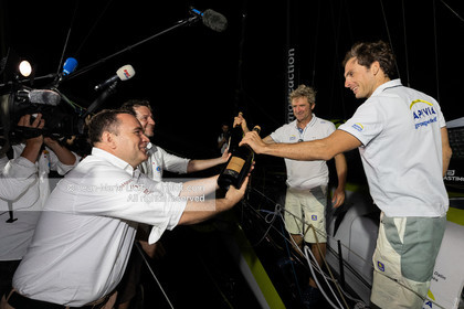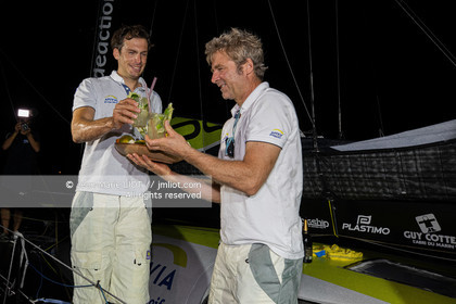 Salvador de Bahia, le 10 novembre 2019 Charlie Dalin et Yann Eliès skipper sur Apivia arrivent premier dans la catégorie Imoca.