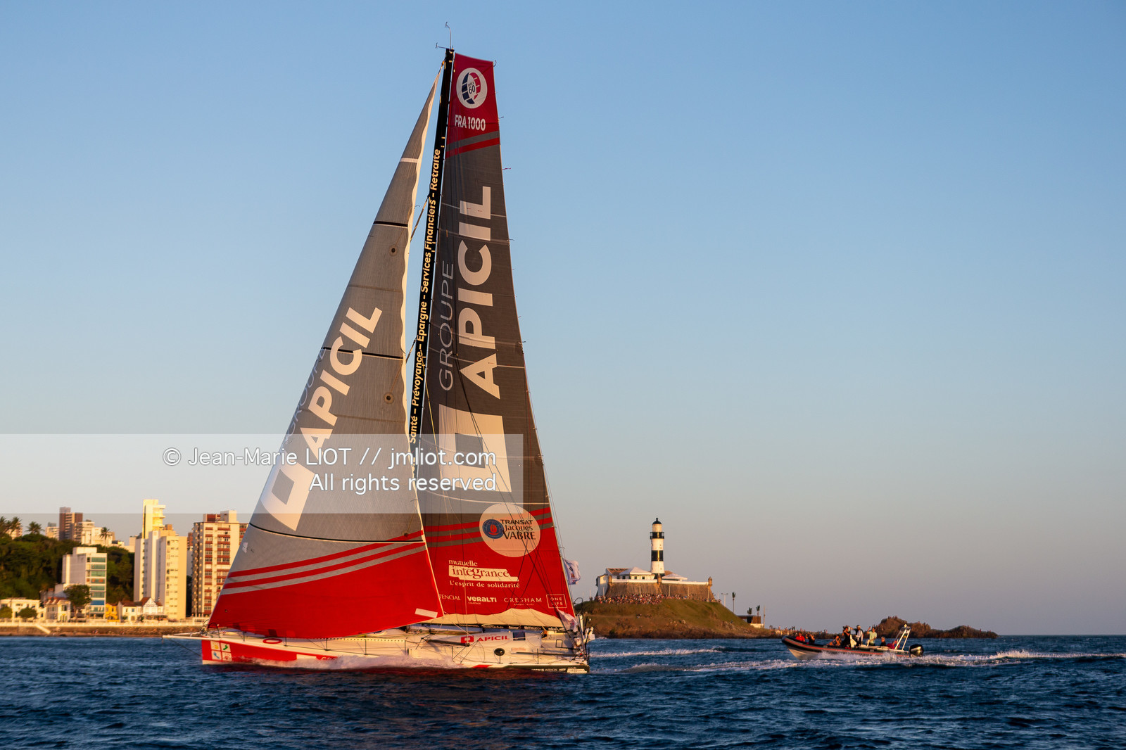 | Description | Transat Jacques Vabre 2019, arrivée à Salvador de Bahia, de Damien Seguin et Yoann Richomme à bord de l'Imoca Groupe Apicil .le 11 novembre 2019.Photo © Jean-Marie Liot / Alea. |