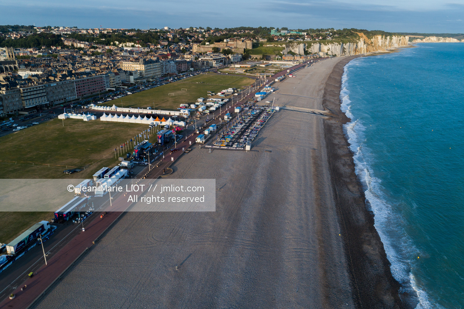France, Normandie, Seine Maritime, vue aérienne de la ville, des falaises et plage de Dieppe.